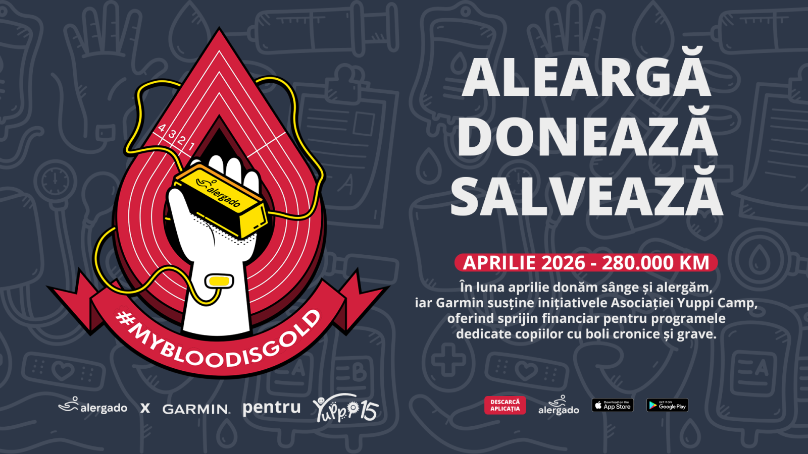 În luna aprilie donăm sânge și alergăm împreună 280.000 de kilometri, iar Garmin susține inițiativele Asociației Yuppi Camp, oferind sprijin financiar pentru programele dedicate copiilor cu boli cronice și grave.